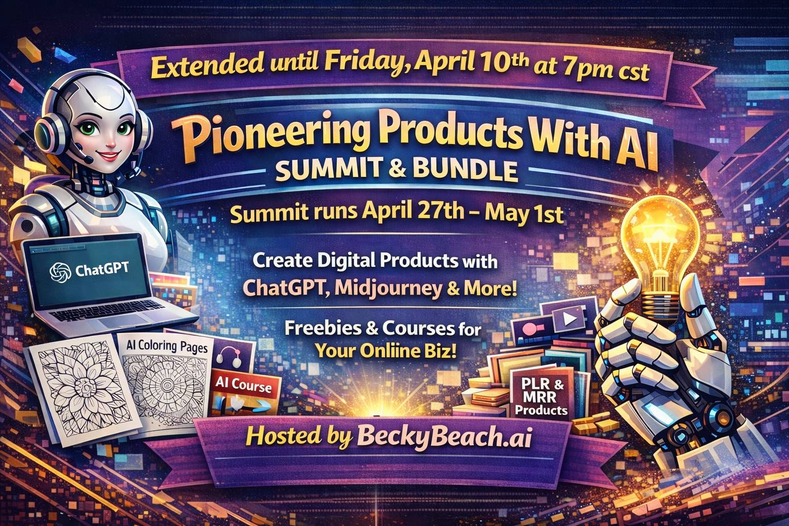How's it going, Reader? I thought I would send a reminder about my 2nd annual summit and bundle on creating with AI hosted by the BeckyBeach.ai shop!The first Pioneering Products With AI Summit and Bundle was back in 2022 and had over 2,000 sign ups and plenty of interest. AI is more popular nowadays so I imagine this event will be even more attended. Guidelines: All the talks must be about creating digital products with AI or about AI related tools like ChatGPT or Midjourney. Example: how to...